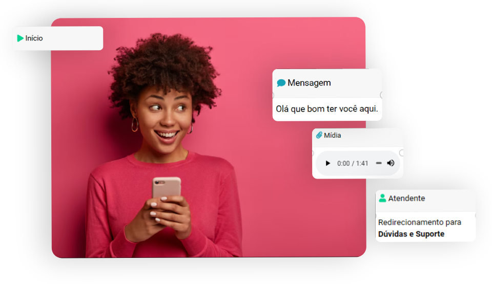 Ofereça a seus clientes um atendimento instantâneo e eficiente, a qualquer hora do dia. Automatize interações, resolva problemas simples de forma rápida e deixe os atendentes humanos focarem em questões mais complexas.